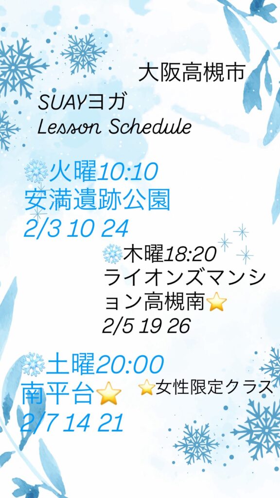 2月のレッスンスケジュールのお知らせです。