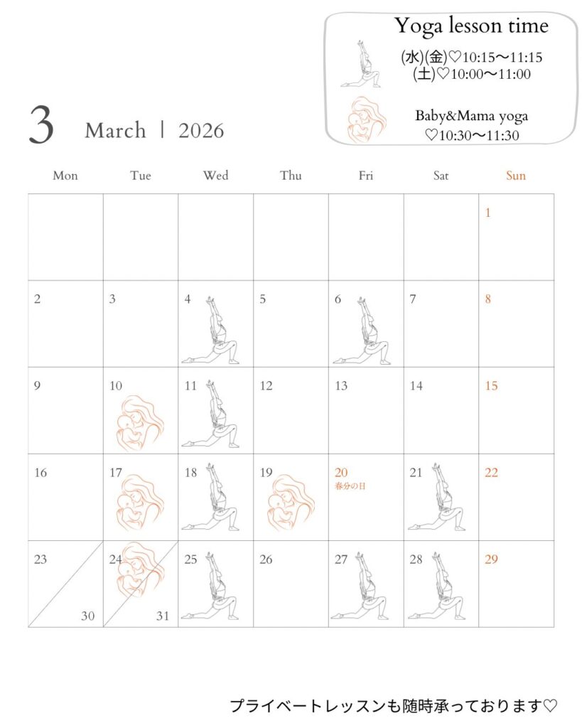 【奈良 大和西大寺教室】3月レッスンスケジュールのお知らせ