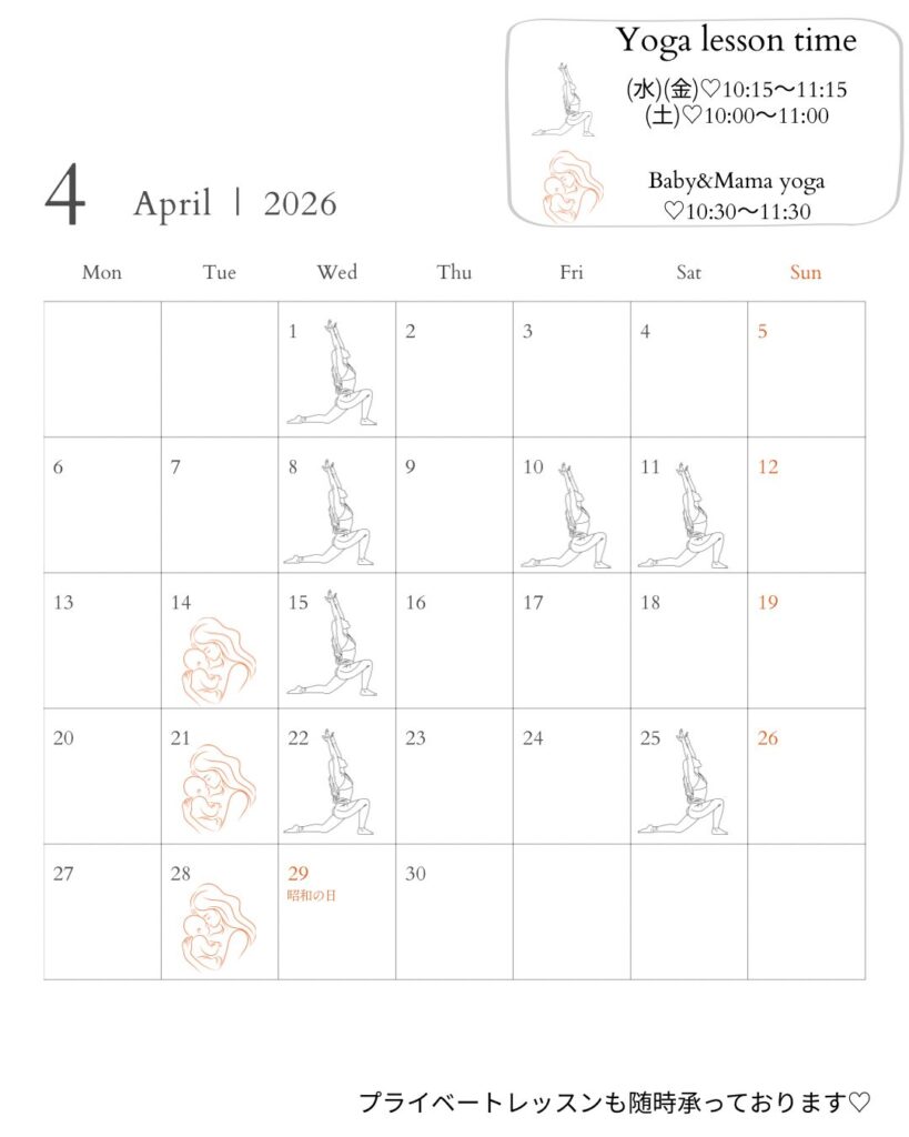 【奈良 大和西大寺教室】4月レッスンスケジュールのお知らせ